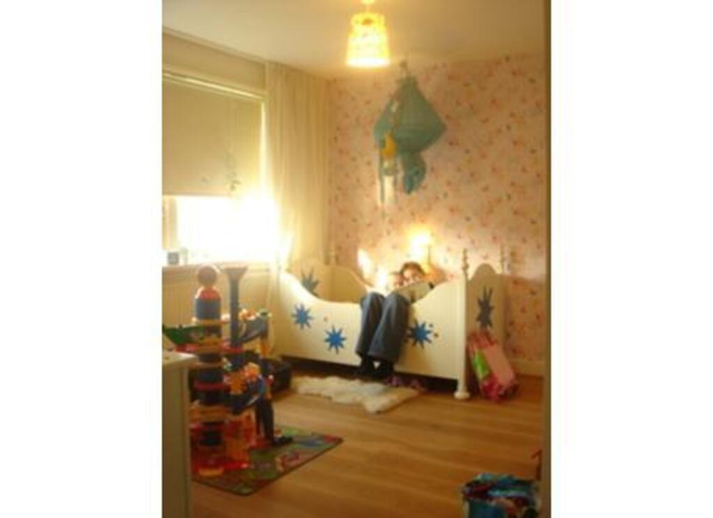 The living room is a comfortable area to relax, with a fireplace. It is in open connection to the modern kitchen, with the dining table looking out over the green and private garden. The first floor consists of 2 bedrooms, a studyroom and a bathroom. On the second floor is one bedroom, a big playroom / 'chillroom' for adolescents and seperately a laundry place with washer and dryer.