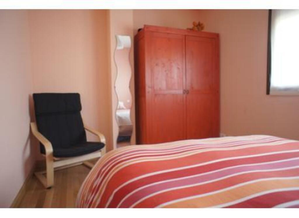 Este es nuestro apartamento, sencillo y acogedor en urbanización a 1 km. de Ezcaray. El apartamento consta de cocina, sala-comedor con sofa-cama, una habitacion con cama de matrimonio y otra con cama de matrimonio y cama alta donde pueden dormir 3 personas. Un baño completo y un aseo. La distribucion es muy comoda ya que permite hacer 3 dormitorios con la sala.