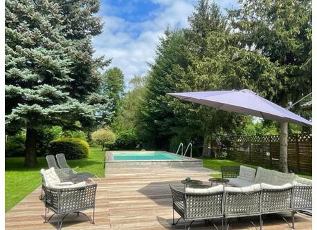 We live in a bright appartment in an Art Noveau house built in 1902. It consists of six rooms: Living room, dining room, master bedroom, second bedroom and two kids' rooms, a spacious kitchen, two bathrooms with showers and bathtub, and a balcony. In the living room, we have two sofas, one of which can each be converted into an additional guest bed for two. We own an allotment garden only 5 minutes away from our home. The allotment has a swing and a tiny fish pond as well as a wooden hut with a small kitchen and a barbecue grill.