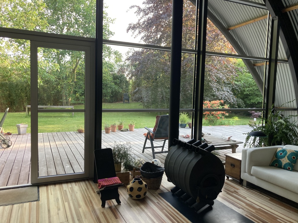 Behind the greenhouse lies our sauna in a Siberian loghouse. We have a garden shower on the terrace. It is great to relax in the sauna, cool off under the garden shower and sit down in front of the fireplace afterwards.