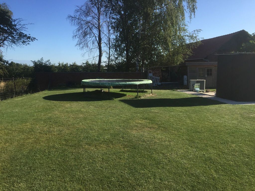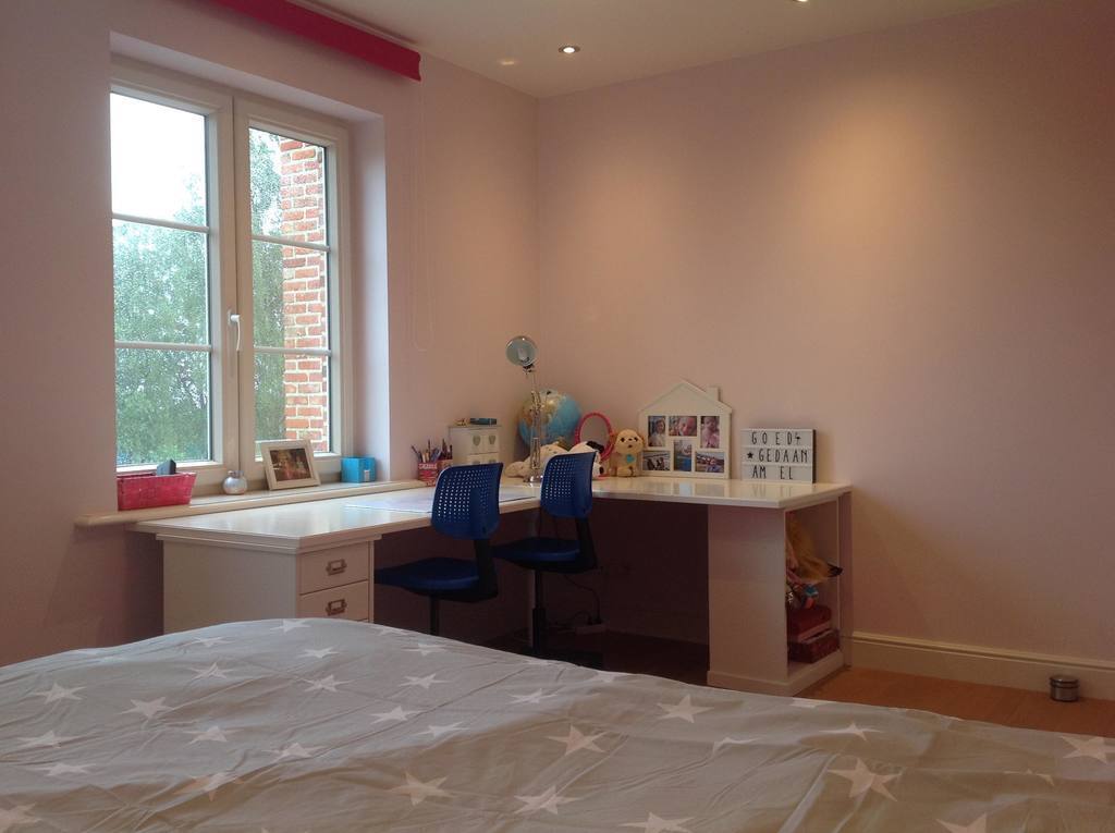 Our comfortable and recently build house is situated in the fruit orchards of Belgium, in Haspengouw. The kitchen is fully equipped, the living and dining room are very spacious with a large table, a king-size sofa and a wide flat screen tv. We have 4 bedrooms, each with double beds (baby stuff and cradle still available). The bathroom consists of a central bath, a shower and 2 sinks. There are 2 separate toilets, a study, a utility room, a cellar and an attic. A large terrace to the large secluded green garden, with lots of children’s play tools: trampoline, bikes, sand box, slide, swings, basketball board, …