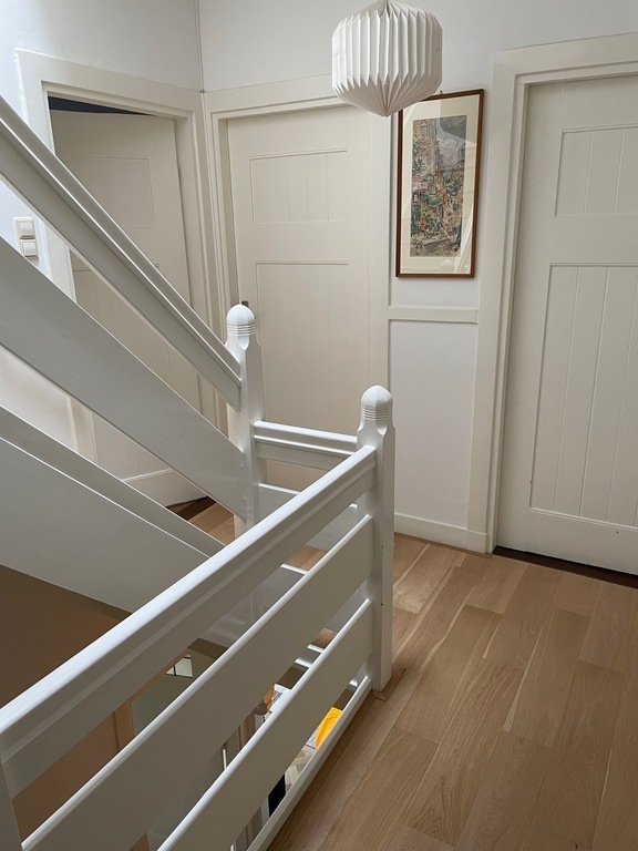 Our house is one of the 86 lucky ones to have been built in a complex called "Tuinwijkzuid" http://tuinwijkzuid.nl/ by architect J.B. Van Loghem around 1920. The design of the whole complex is pretty unique, as its features and those of its houses. Comprised of two "blocks", each block has its own small central park with trees and bushes which are now, in many cases, almost 100 years old (!), every house has its back terrace or garden opening on the common park, a truly unique and great features. Imagine that: overlooking none but trees in your backyard. The houses where also designed internally by Van Loghem and many details are still there: ample staircases (for the Dutch standards!), a unique in-style cupboard and many, many built-in forniture. We just add parquet floors in a few rooms, matching as much as possible the beautiful one we found when we entered the house, and built a second bathroom on the 2nd floor, which also sport a handy terrace which we fashion into a sort of solarium.
