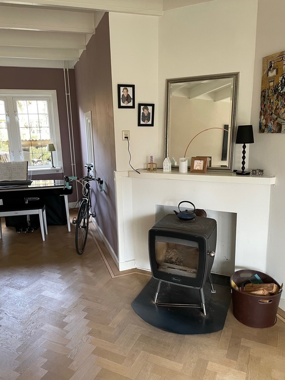 Designed by architect J.B .Van Loghem our beautiful house has been our home since 2013. It has a unique charm, incredible details and a lot of space, light and green. The current layout comprise of 3 bedrooms (1 Kingsize, 1 queensize and a kids room with two single beds) one office room, two bathrooms, three toilets, one kitchen with separate entrance to the front garden, one living room with original glass-in-led windows on both the east and the west walls, a separate (and separable, thanks to original sliding doors) dining room with room (and the table) for 10 guests. One cellar and a back terrace on the compound's park complete the design. The area is out of a dream (at least for a Roman like myself), peaceful and green, litterally a few steps from the Spaarne river as well as from the city park called "Den Hout", "The Wood", litterally. Where you can find a small diners which looks out of a postcard and a small "kinderboerderij" or animal farm for children. Not to mention plenty of deers!