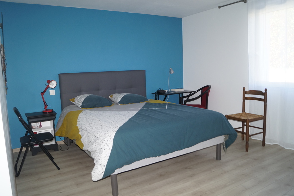 à l'étage : 2 chambres avec lit 2 personnes , 1 chambre avec un lit une personne , salle d'eau et toilettes séparées .