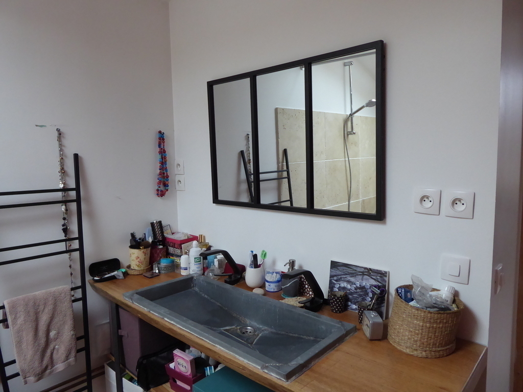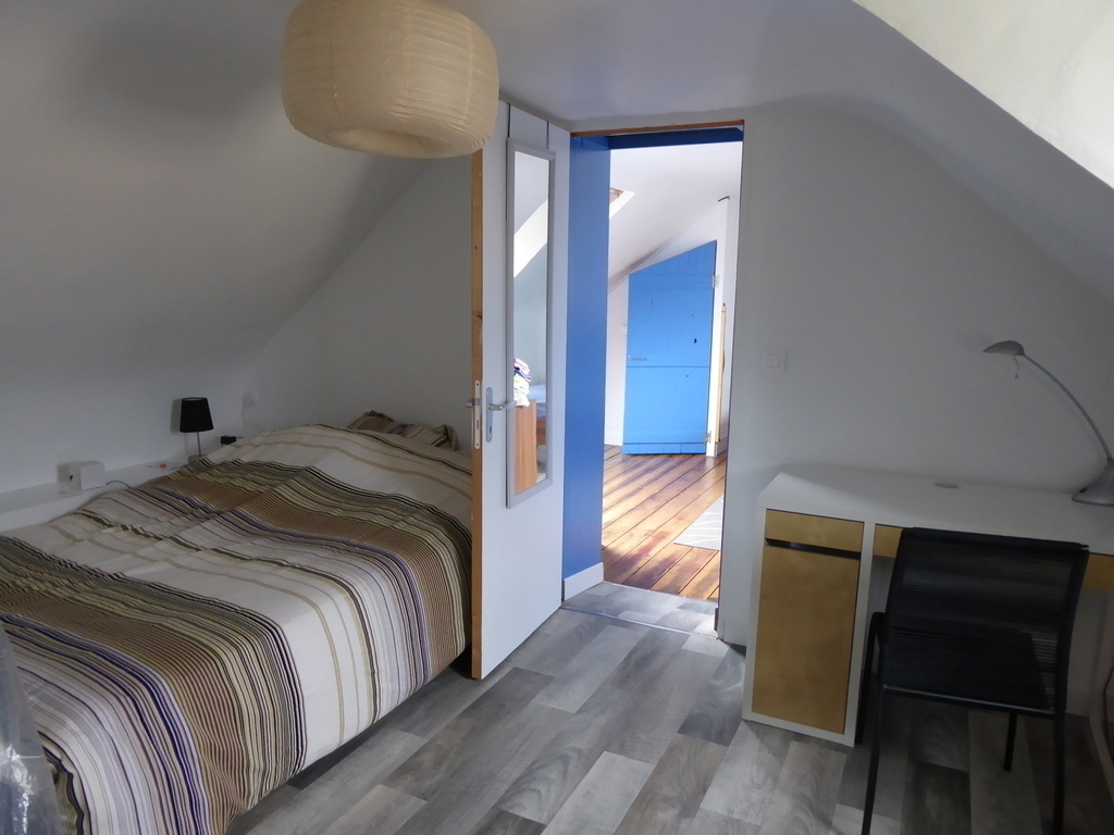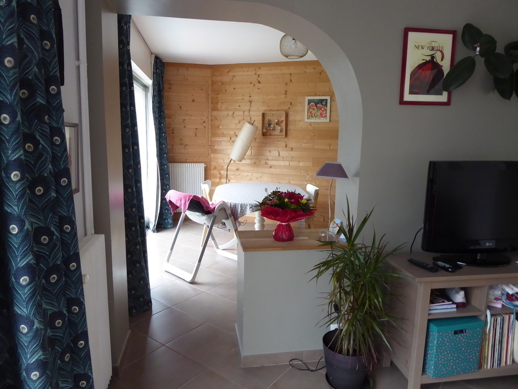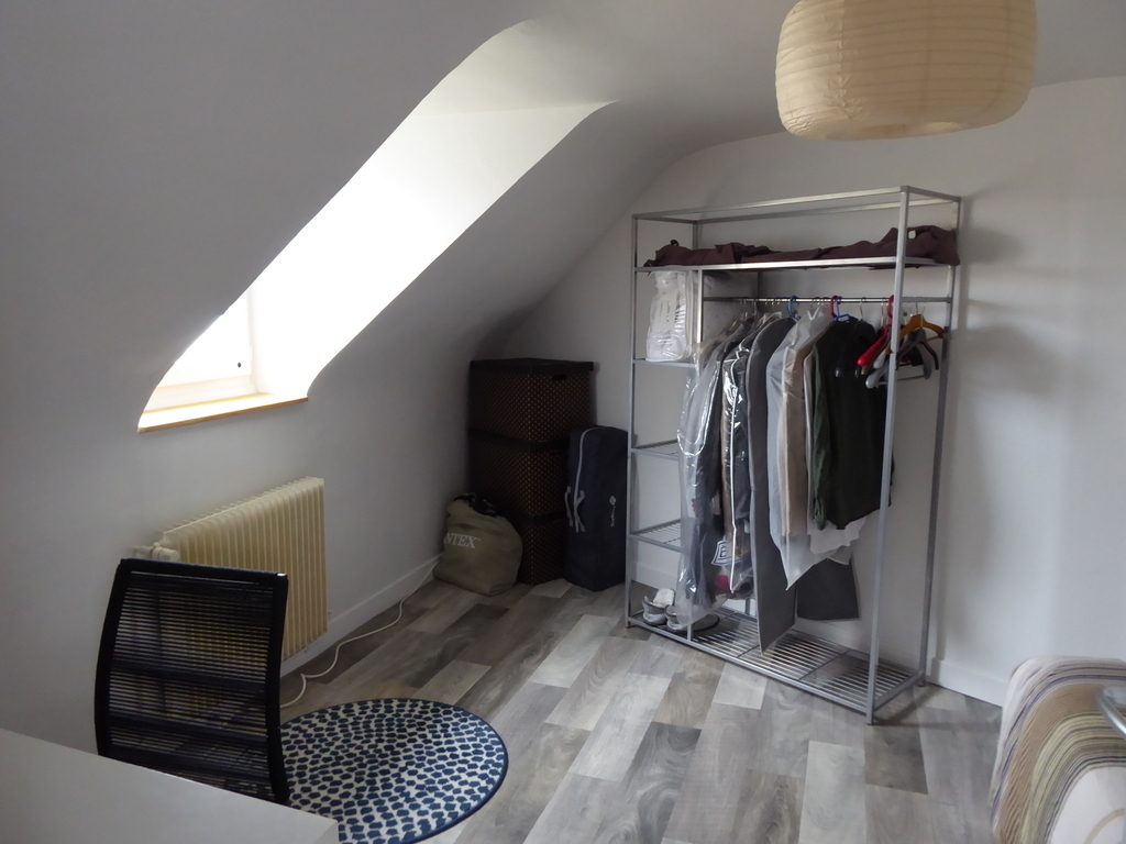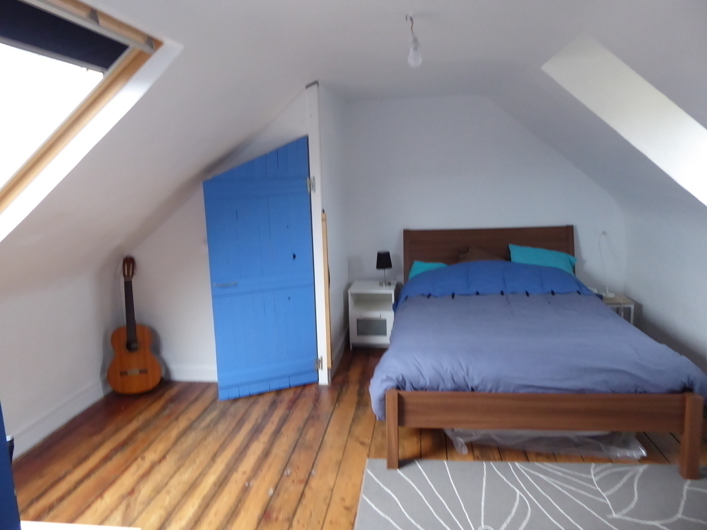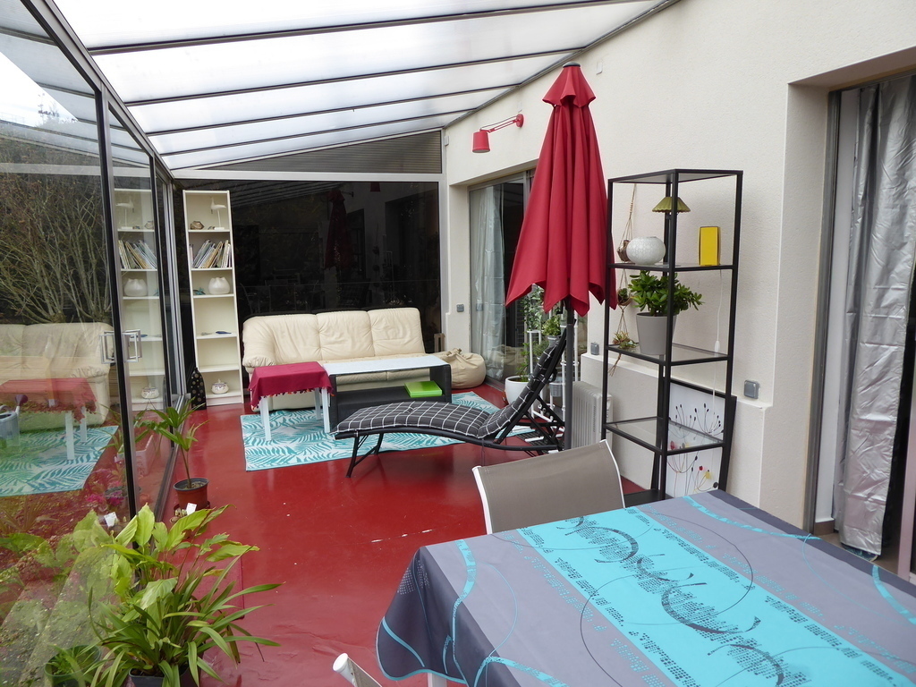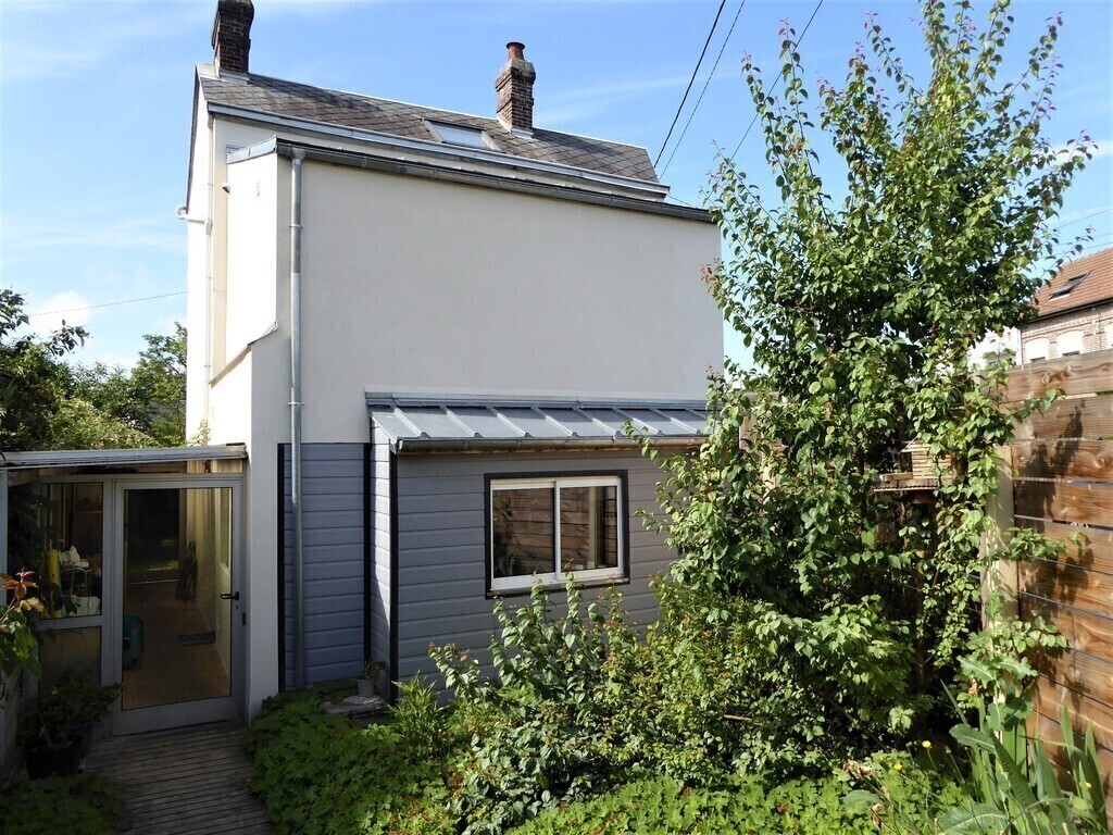Old house of 120 m² + a veranda, on 2 floors. On the ground floor, kitchen, laundry, wc, living room with a pellet stove, dining room / games room / office space, and the veranda. On the 1st floor, 3 bedrooms, one with walk-in shower and small sink and 2 children's rooms, bathroom and WC. On the 2nd floor, 2 connecting rooms. The veranda overlooks a large garden with trees and flowers. Possibility to park a car at the bottom of the garden, in front of the garage.