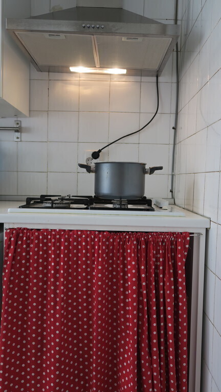 Our appartement is well-equipped(washing machine, TV, internet,cooking supplies,...). It consists out of: the kitchen(microwave, dishwasher, washing machine and other appliances), the living room has a saloon and on the other side a dining tabel for 4 persons, with view on the terras. The terras is equipped with a colourful dining table and a lounge chair..