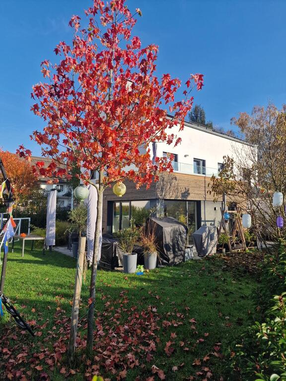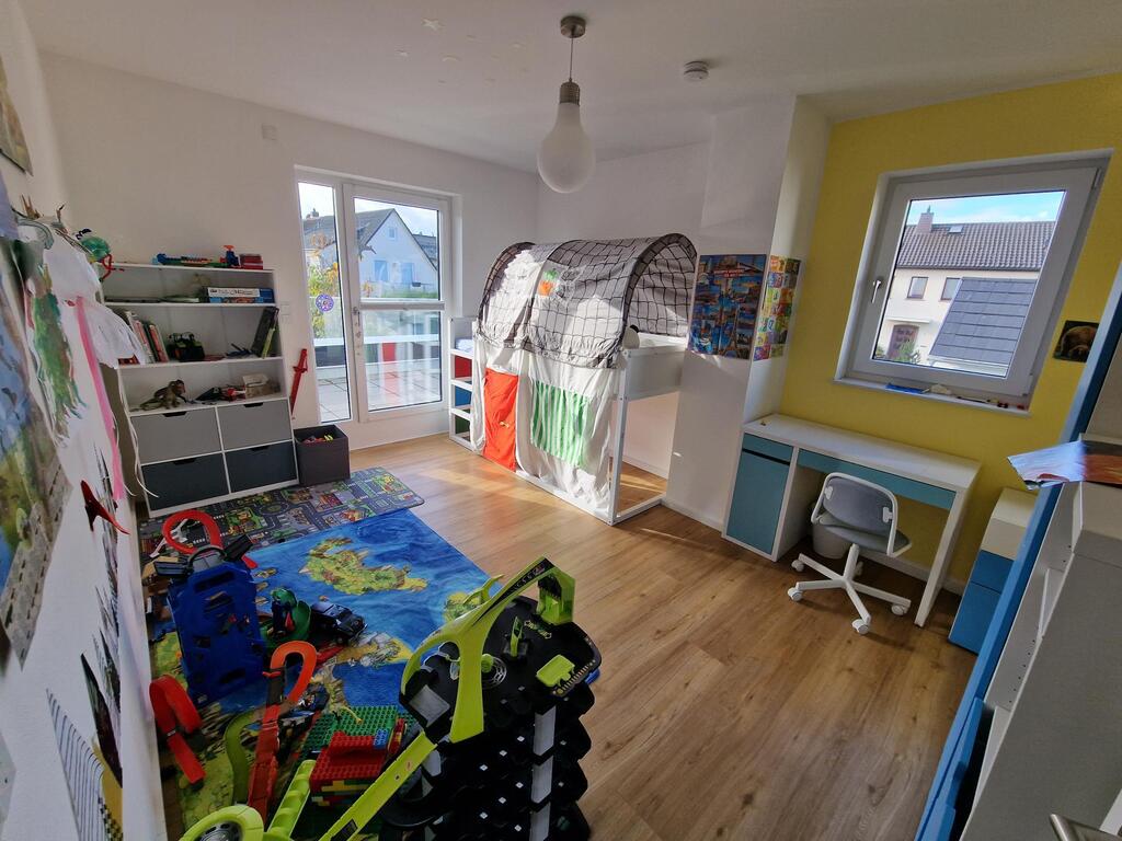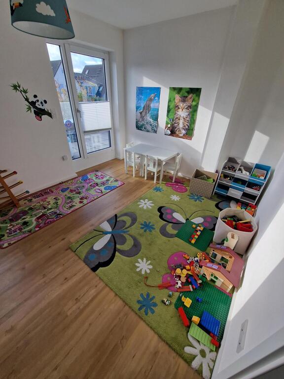 Our house with a big garden is located in the northernmost district of Frankfurt in a quiet area. The house is newly built and has plenty of space (220 sqm). There are six rooms on three floors available for guests. On the ground floor is the kitchen and living room, 1st floor 3 bedrooms and bathroom and on the 2nd floor two more sleeping rooms and a bathroom.