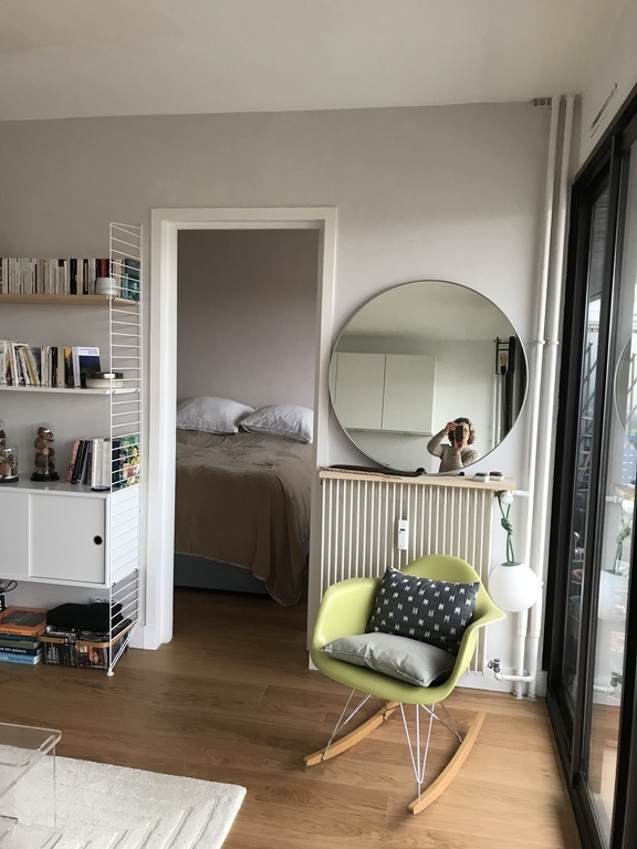 The apartment is very bright, with a large balcony, and has just been renovated. It offers privacy, a lovely balcony in a quiet setting, and a view of the Parisian sky.
