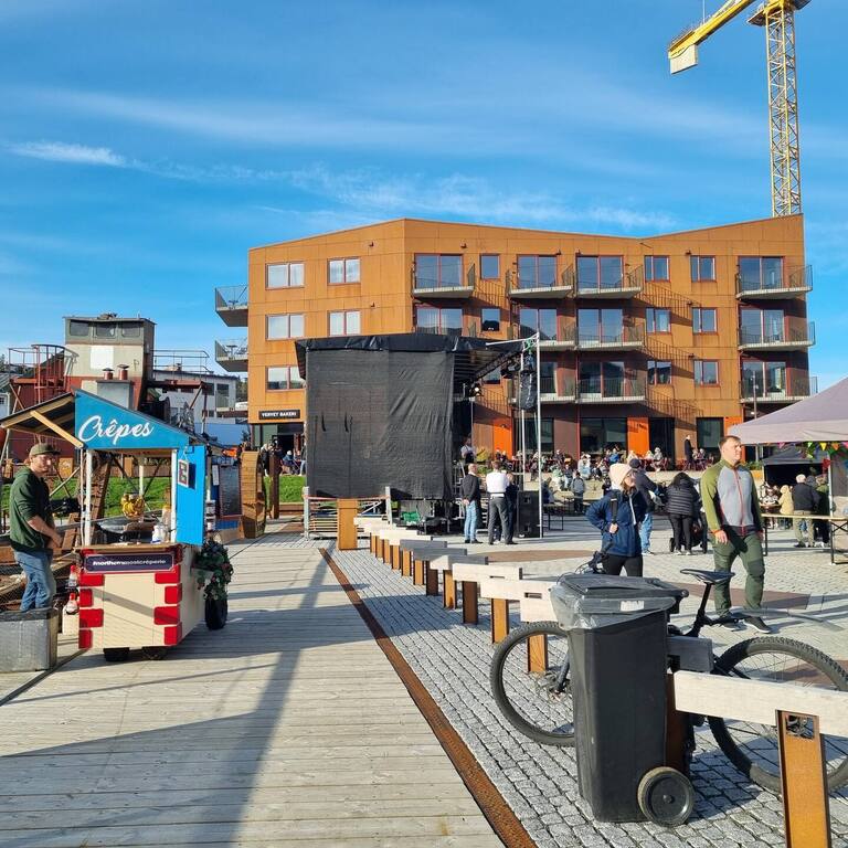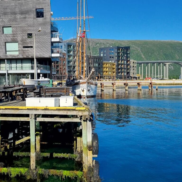 Det er kun få minutters gange inn til Tromsø sentrum, og vi har flere restauranter i første etasje på blokkene der vi bor, både fisk, kjøtt, italiensk pizza, vinbar mm.