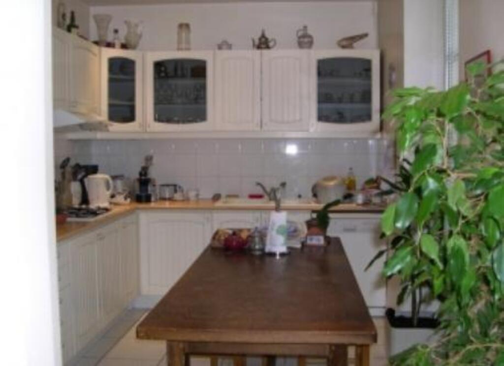 2 bedrooms with double bed , bath and shower and everything in the large sunny kitchen .