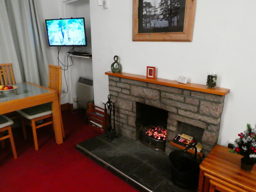 Munro Cottage is a traditional Victorian stone mid terrace cottage situated in a quiet cul-de-sac within walking distance of Aviemore town centre. It has a living room / dining room, one double bedroom, two twin bedrooms, kitchen, toilet & shower, two further toilets, an additional shower room and a garden. The lounge and hall are heated by storage heaters. The bedrooms and kitchen have electric panel heaters. There is an open fire in the lounge which burns wood, peat or coal.