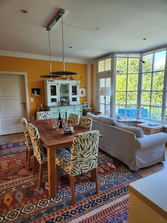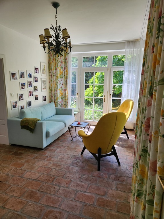 Our house was built a houndred years later for the young family members to have balls. It is very bright and friendly and one can see that the 2000m2 garden was a darling since 150 years. It was totally renovated and enlarged by my husbands parents and is now 280m2, with two bathrooms two living rooms, a veranda and 3 bedrooms.