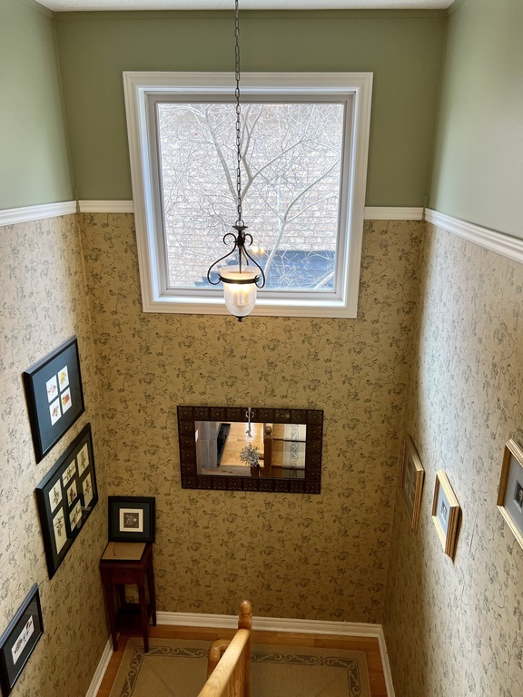 Our house is a two story detached home and consists of 3 bedrooms and two bathrooms upstairs. On the main floor there is a living room, study and kitchen with dining room. There is a washroom on the landing leading to the basement. In the basement there is a TV room with a wide-screen TV and treadmill as well as laundry room. Another wide-screen TV is in one of the bedrooms upstairs.