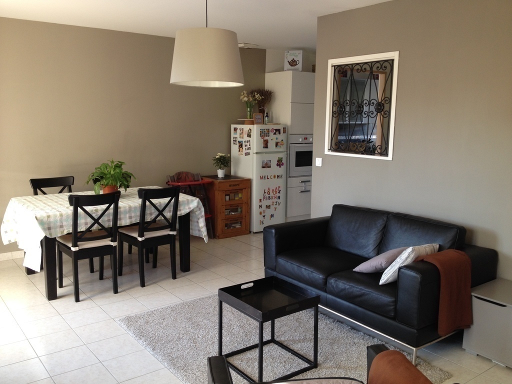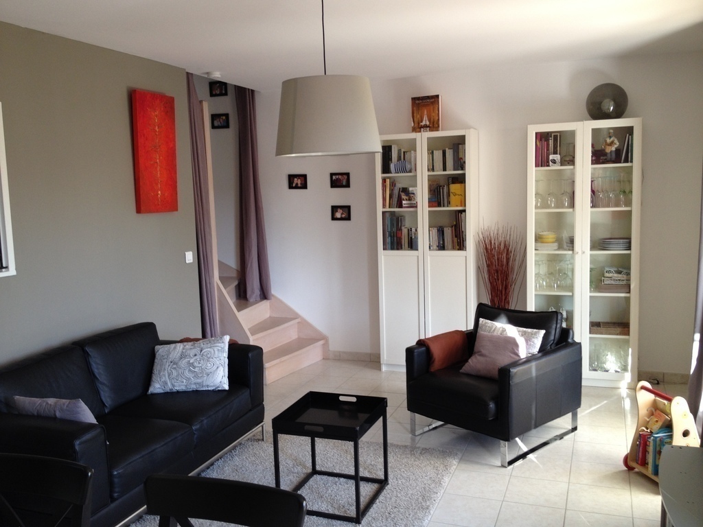 We live in a house with one floor. At the ground floor there is a kitchen with an big living room, one WC and an access to our garage where you could find washing facilities.